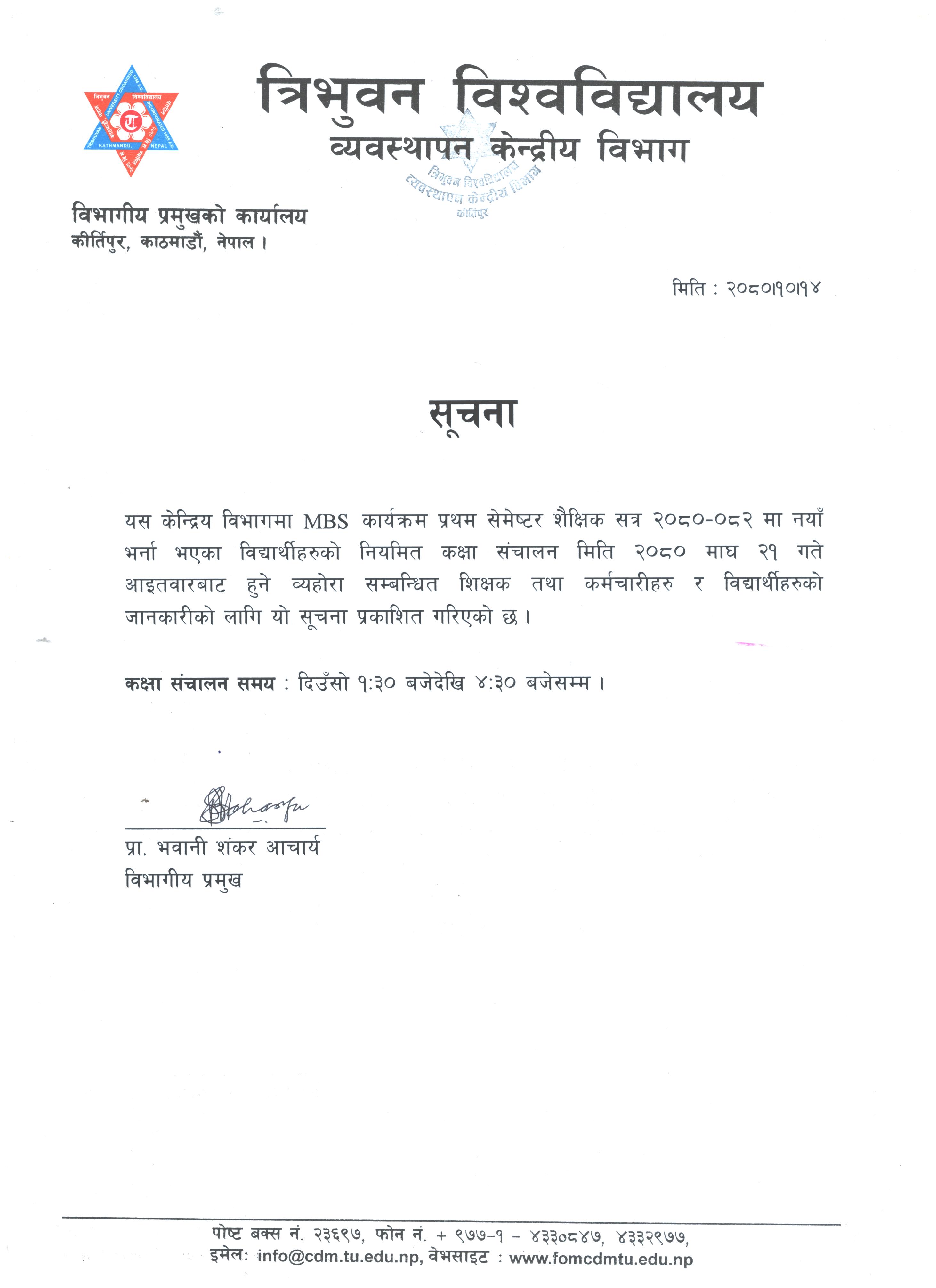 MBS First Semester (2080-082) Class Notice