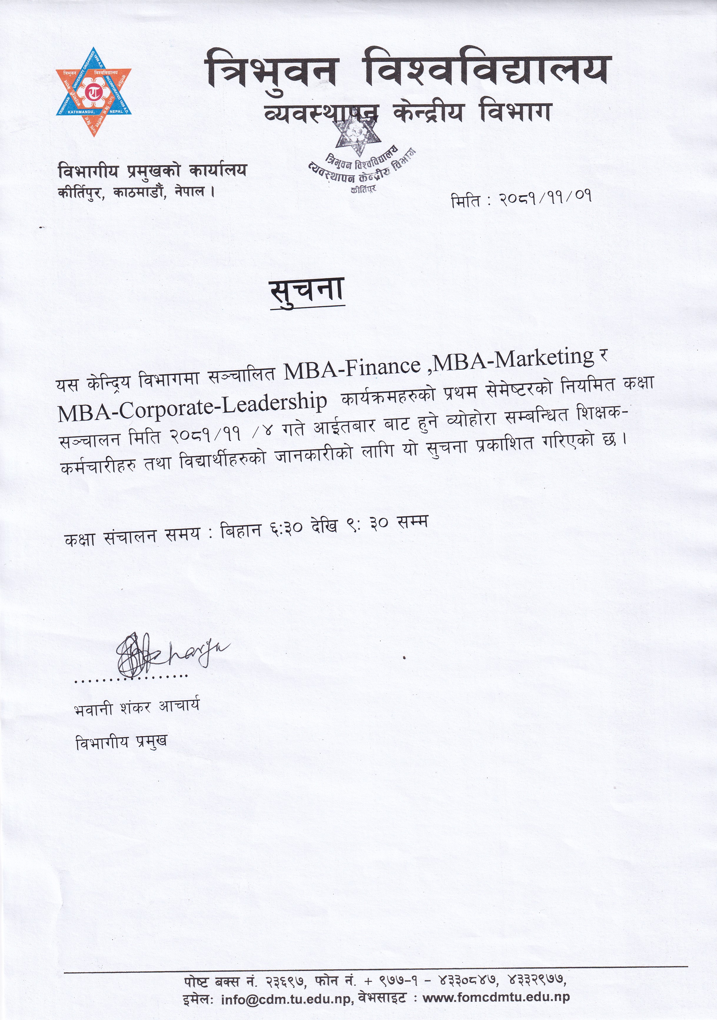 MBA-First Semester(2081-2083) Class Notice